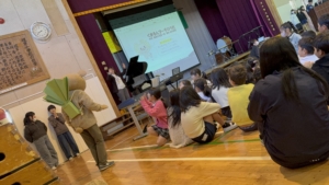 以来、鍵ハモバージョンから始まり、コツコツと一つずつバージョンが増えていきました。そして2024年、歌バージョンの制作を開始。子供達から歌詞に入れたい言葉を募集し、集まった言葉を紡いで歌詞を作っていきました。そしてとうとう2025年2月、歌が出来上がり、音楽朝会において初お披露目が行われ、このプロジェクトは完了しました。